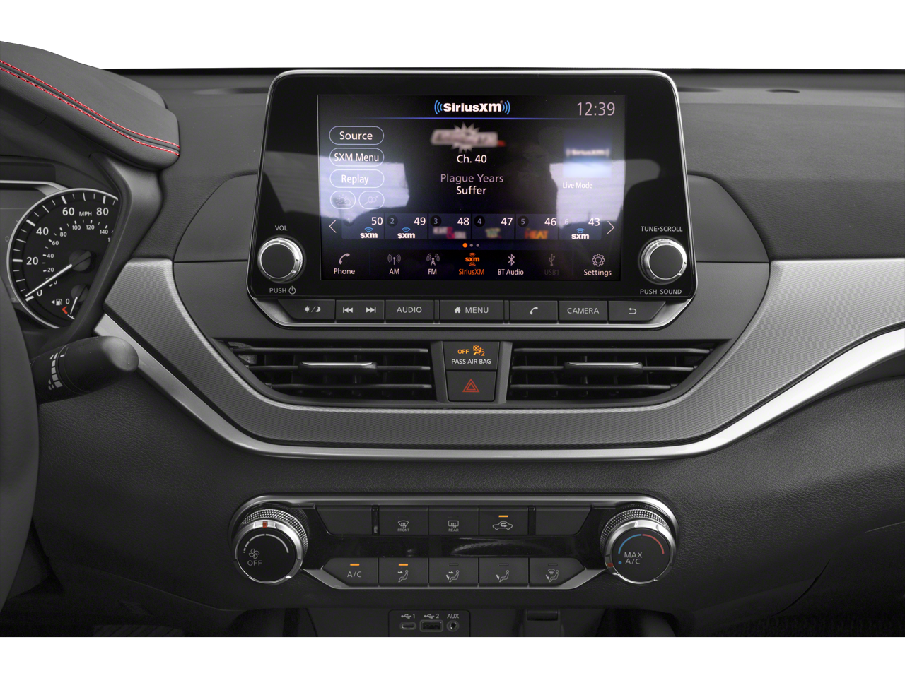 - Radio: AM/FM Audio System -inc: RDS, MP3 and aux-in, 6 speakers, NissanConnect featuring Apple CarPlay, Android Auto, 8" color display w/multi-touch control, 1 front illuminated USB port (type-C) for compatible devices, SiriusXM radio, Bluetooth hands-free phone system, streaming audio via Bluetooth, hands-free text messaging assistant, Siri Eyes Free and Google Assistant voice recognition